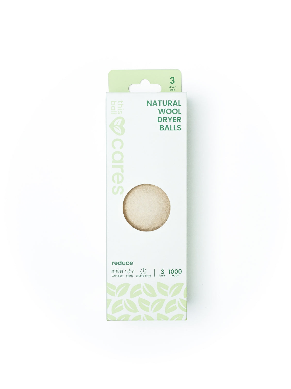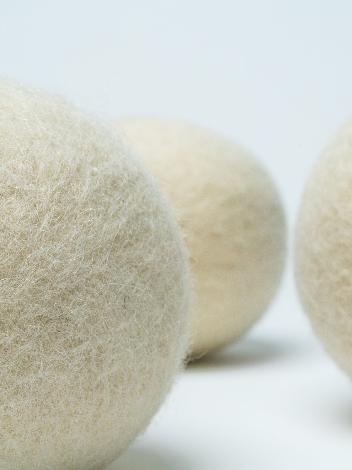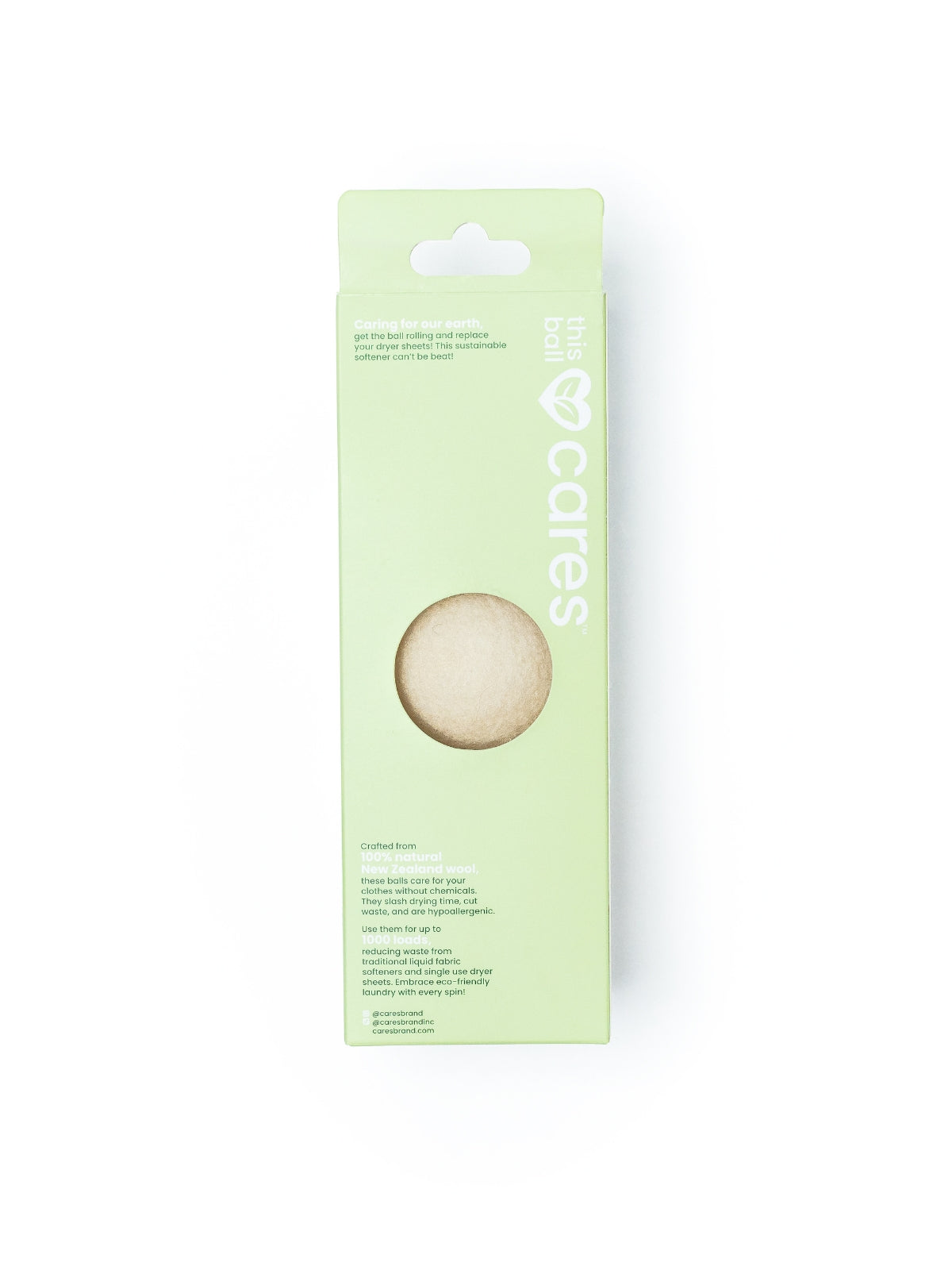 Natural wool spun into a durable, lightweight dryer ball that softens your clothing.