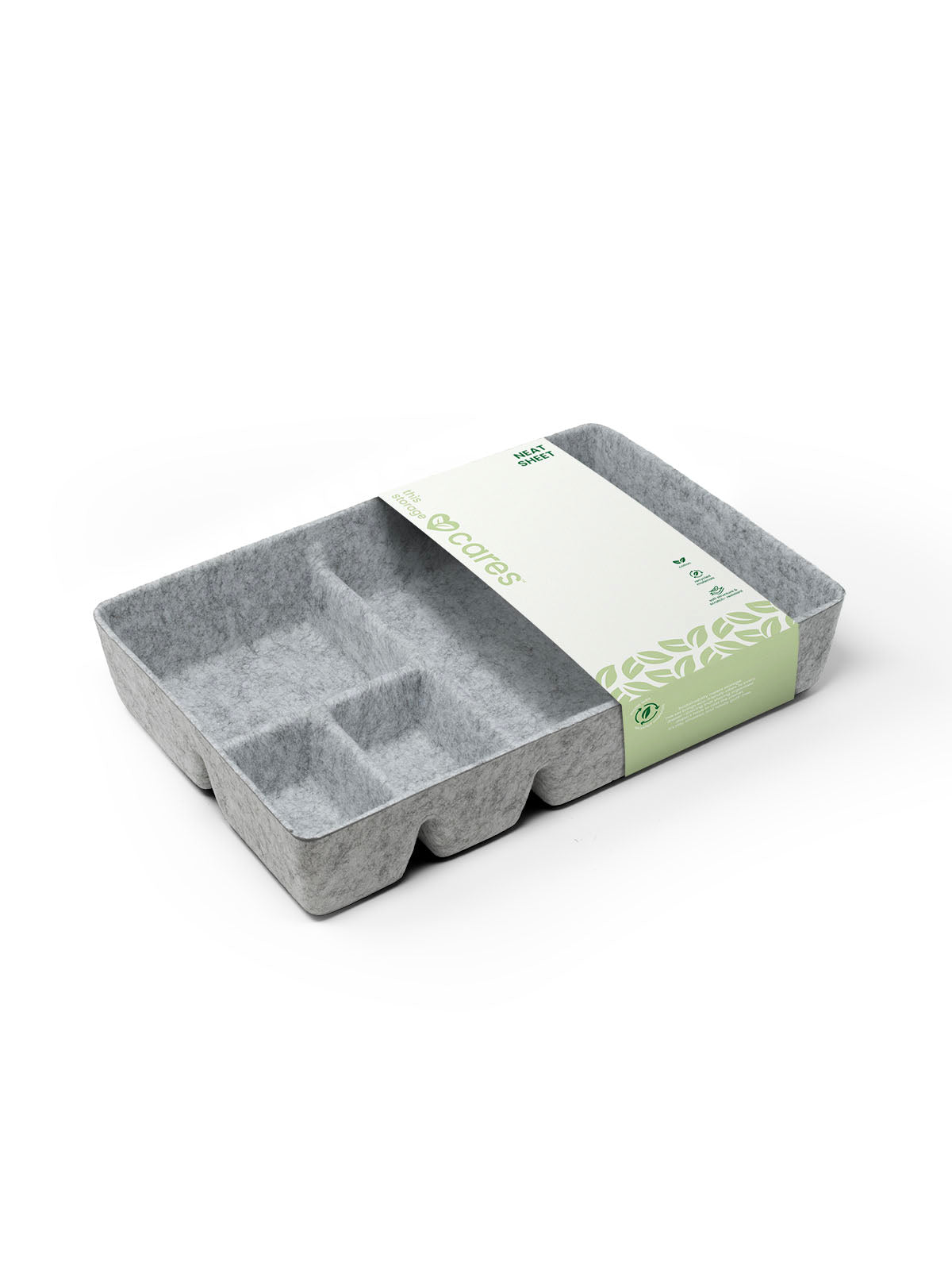 Keep every little thing in its perfect place with the Neat Sheet. Crafted from 100% recycled post-consumer polyester wool blend, this single-sheet organizer features four thoughtfully designed compartments that help bring order to any space. Soft, scratch-resistant, and delightfully functional, it keeps small items neatly arranged while adapting effortlessly to your ever-changing needs—because this sheet cares.